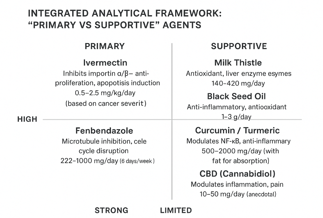 - Ivermectin & Fenbendazole carry higher systemic risk at experimental doses.